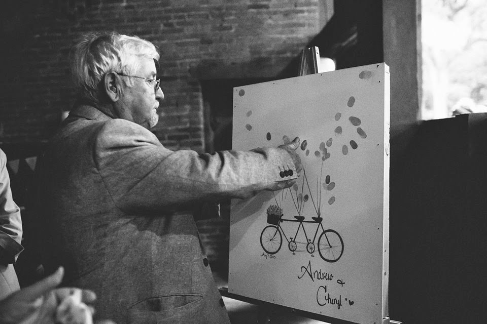 Jacqueline made a design for our invitations, Tiff painted my thumb-print, guestbook canvas, Lisa helped with gluing pennant flags, and so on and so forth.